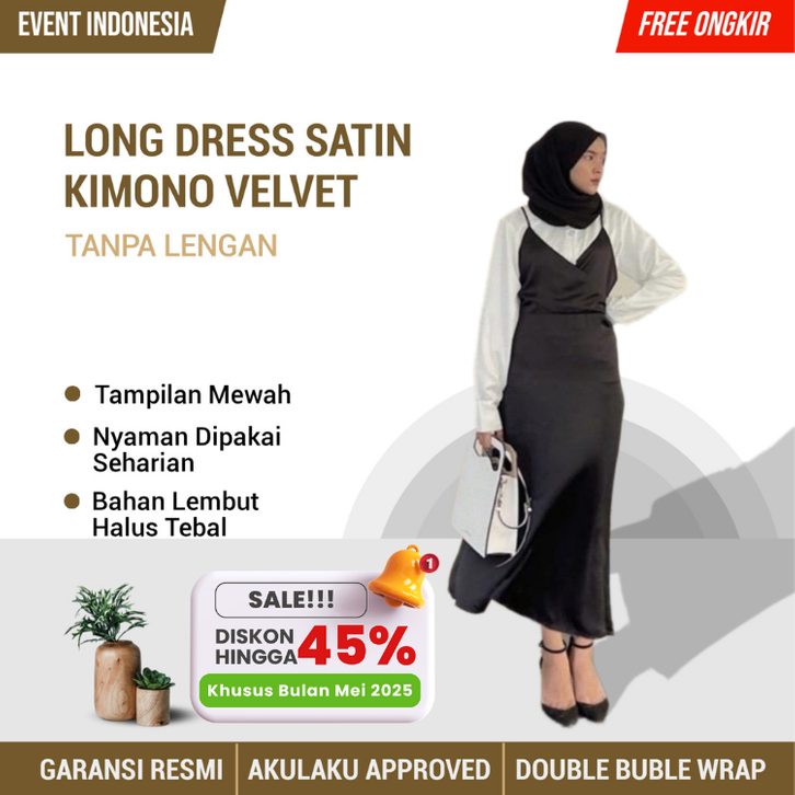 Long Dress Satin Kimono Tali Kecil Dres Model Korea Velvet Tanpa Lengan Fashion Kasual cewe Kekinian