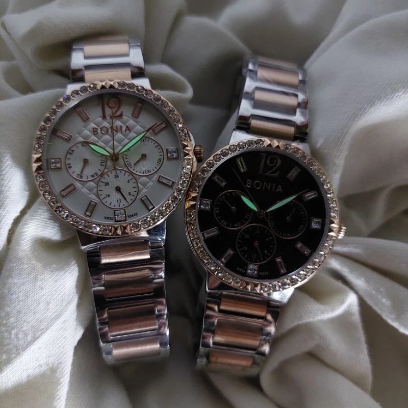 JAM TANGAN WANITA BONIA BNB 10433 SILVER COMBI ROSEGOLD PUTIH - FREE BOX BIASA FREE ONGKIR - JAM TANGAN TERMURAH