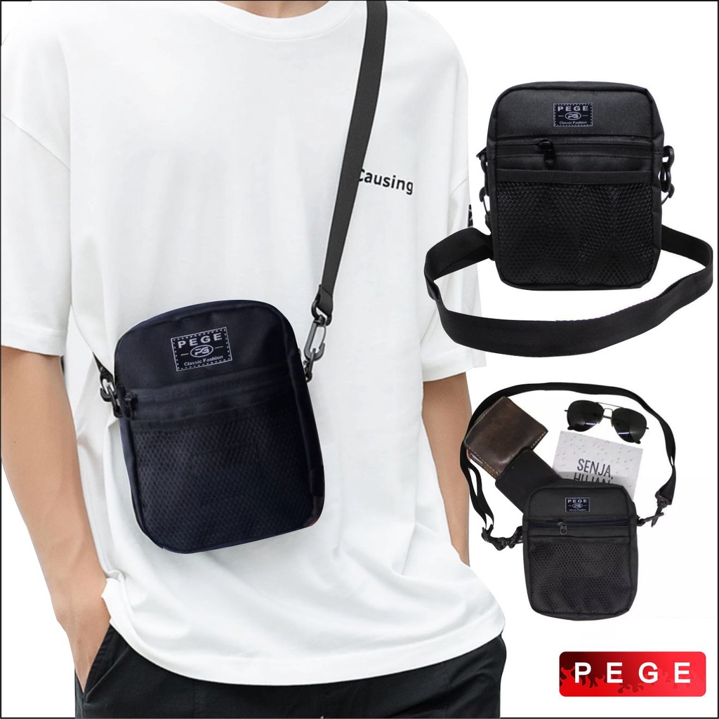Tas Selempang Bahu Pria Kasual Model Polos Hitam Slempang Untuk Sehari Hari Keren Dan Trendy - PG 8884
