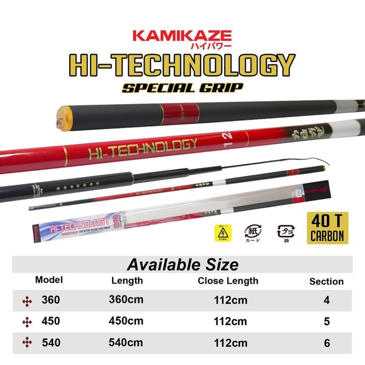 JORAN PANCING MURAH TEGEK KAMIKAZE HI-TECHNOLOGY 360CM - 540CM Bahan Carbon Tegek Ruas Panjang