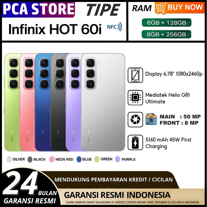Infinix Hot 60i NFC 6/128GB & 8/256GB (16GB Extended RAM) - Helio G81 - 6,7"120Hz HD+ - 50MP - 5160 mAh | hot 60i 8/256