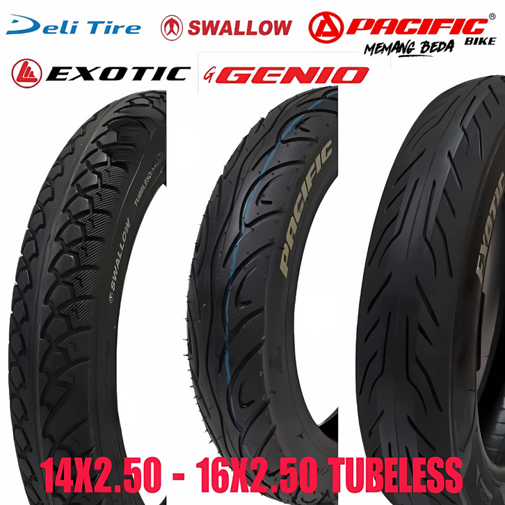 BAN SEPEDA LISTRIK PACIFIC TUBELESS UKURAN 14 X 2.50 EXCOTIC SELIS E-BIKE BAN LUAR EXOTIC SWALLOW SEPEDAH ANAK TUBLESS