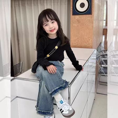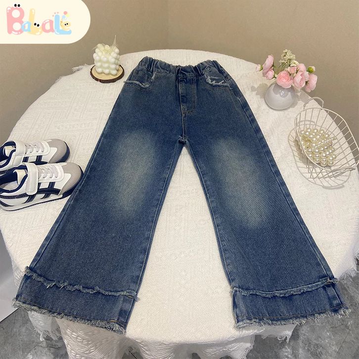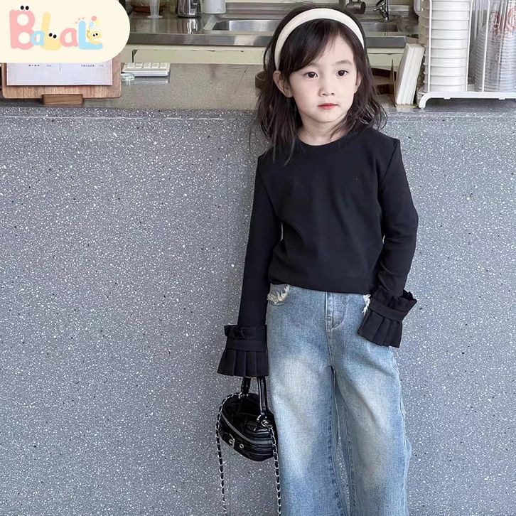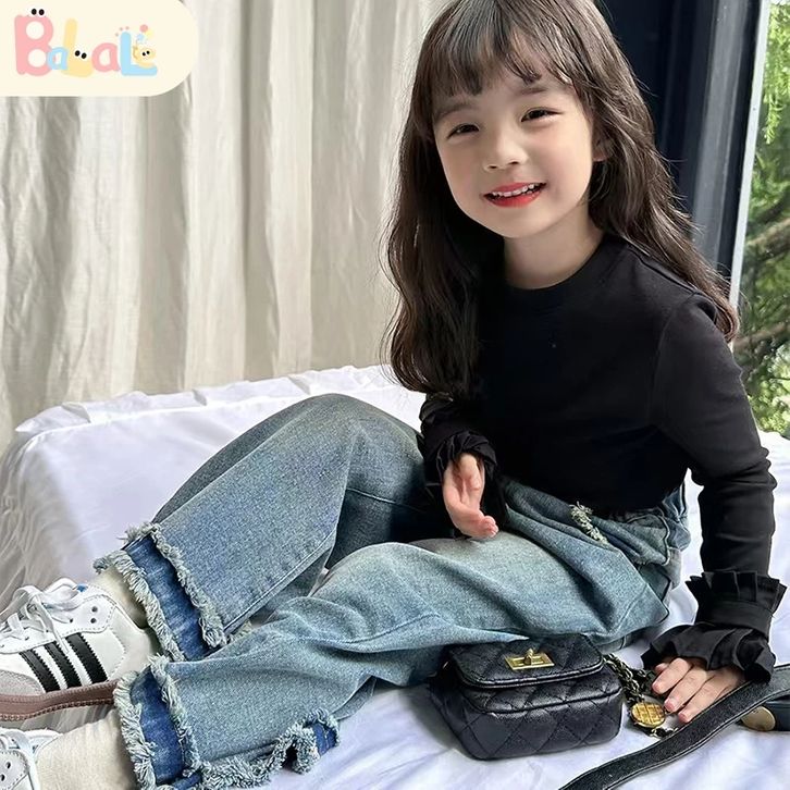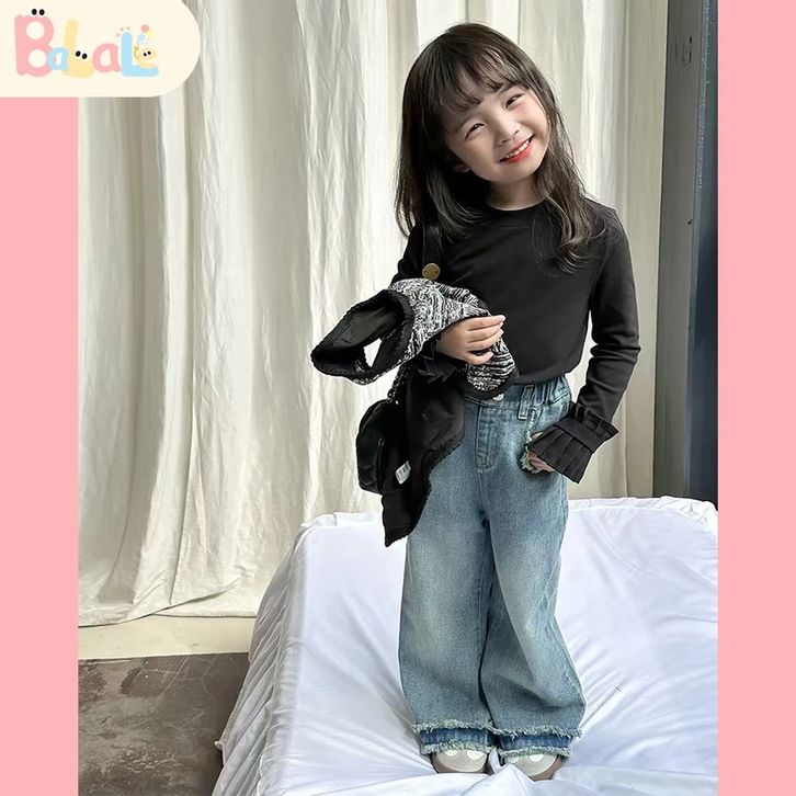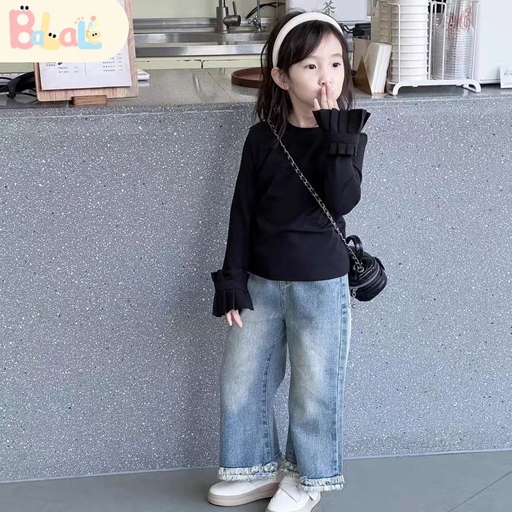 Set Anak Perempuan Setelan BajuLengan Panjang Anak Katun Jeans Casual Style Usia 3-10 Tahun