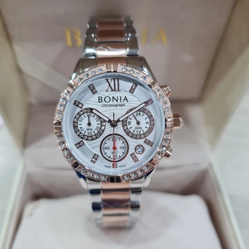 JAM TANGAN WANITA BONIA BNB 10707 SILVER COMBI ROSEGOLD PUTIH - FREE BOX BIASA FREE ONGKIR - JAM TANGAN TERMURAH