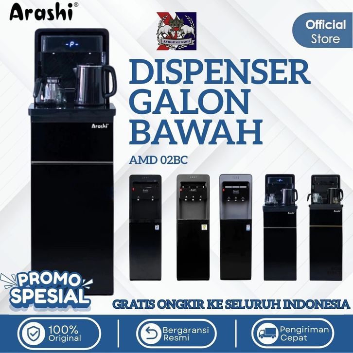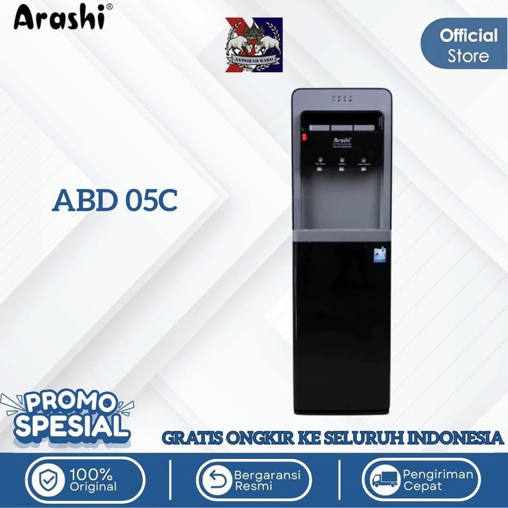 Dispenser Arashi Galon Bawah 3 Kran Panas Dingin Es Normal Low Watt AMD 02BC ABD04C Gratis Ongkir