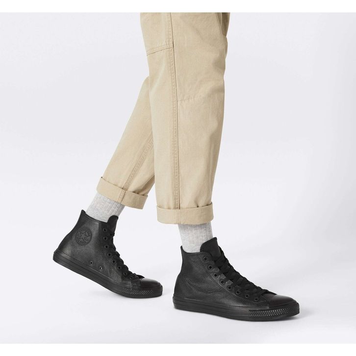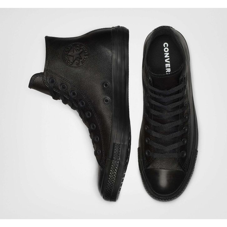 Converse Chuck Taylor All Star Hi High Leather Black Mono Sepatu Pria Wanita Sepatu Vonverse Original Gratis Ongkir