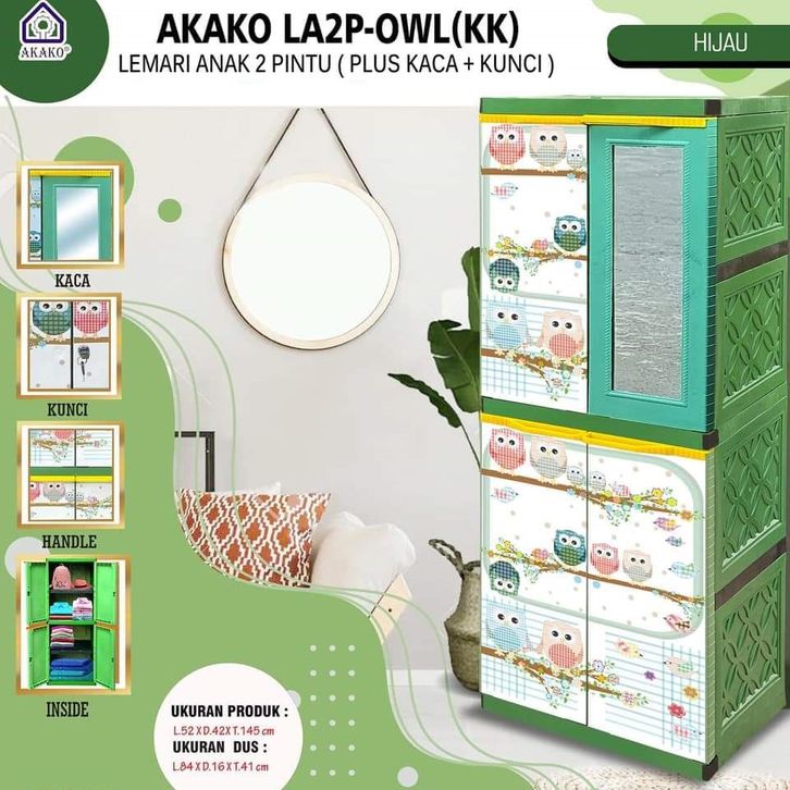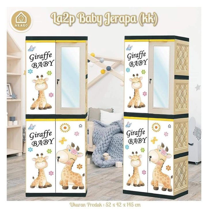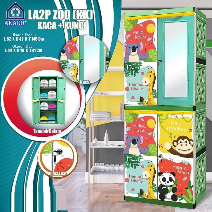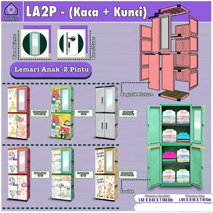 Lemari - rak baju - lemari laci - lemari kaca - Akako Lemari Pakaian Baju plastik 2 pintu LA2P (CERMIN 1) 4 susun CERMIN