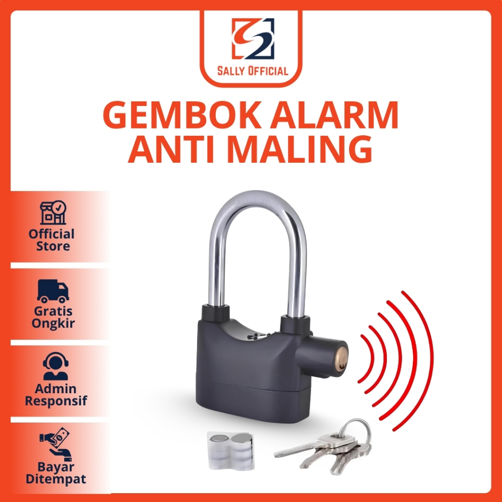 [Star] Gembok Alarm Anti Maling Kunci Gerbang Pintu Rumah Rantai Alarm Lock