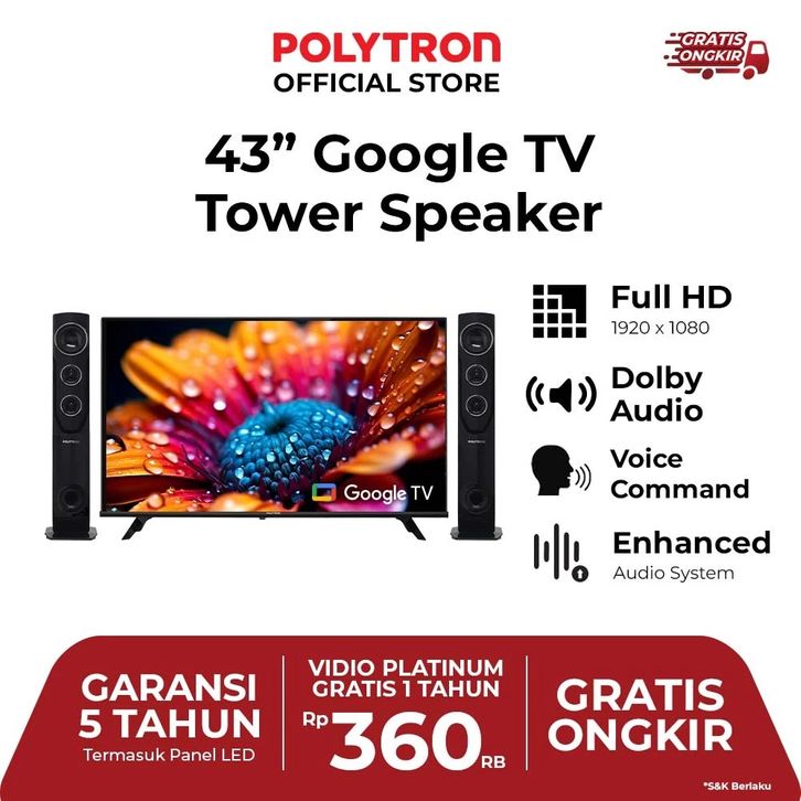 POLYTRON 4K UHD Smart Cinemax Google TV 32 43 Inch PLD 43TG5055 Polytron Smart Android Tv Google Digital Hd Dolby Wifi