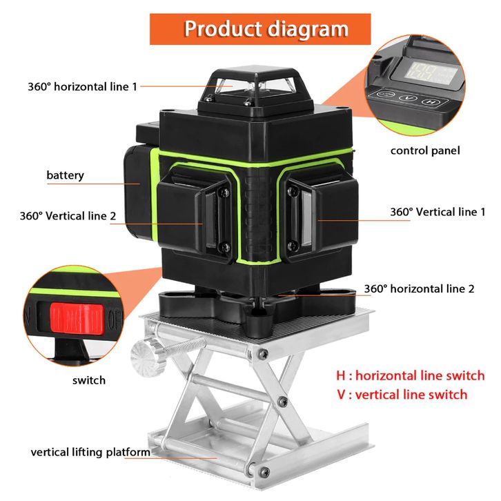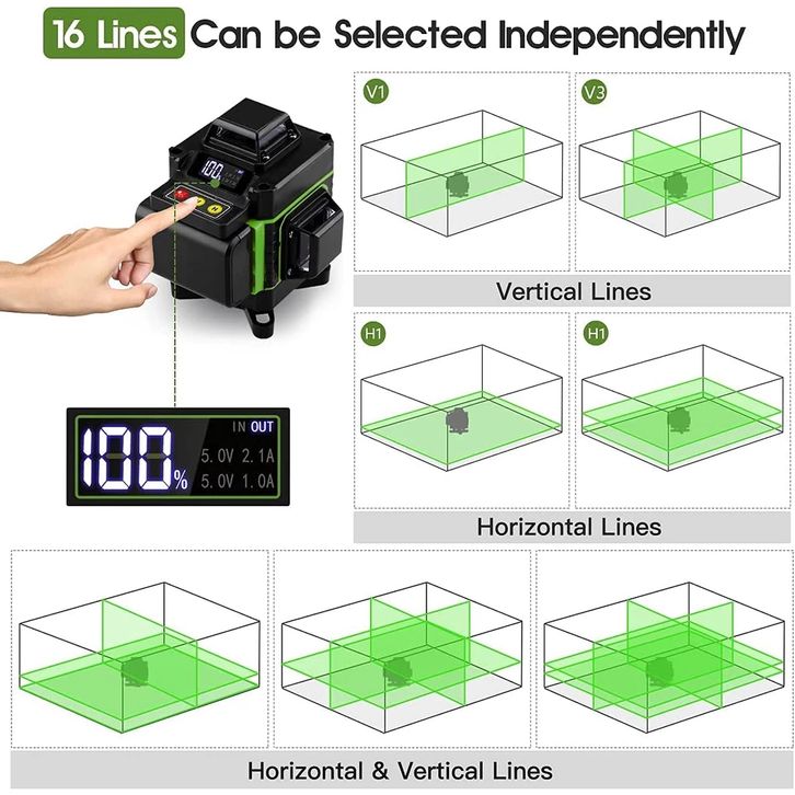 HILDA LASER SIKU BANGUNAN 16 Line Mesin Welding Level Sinar Hijau Jarak Jauh Remot Waterpass Digital Tekiro Magnet