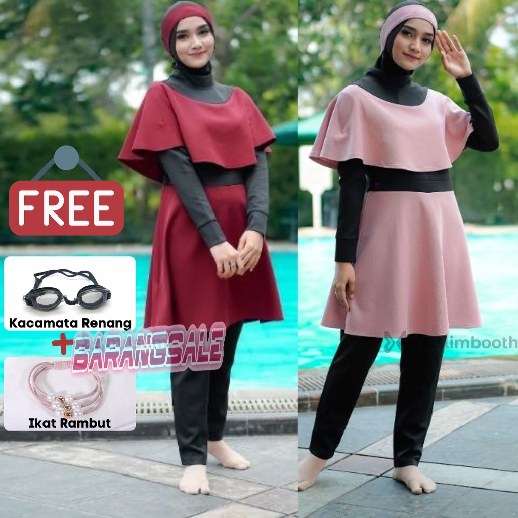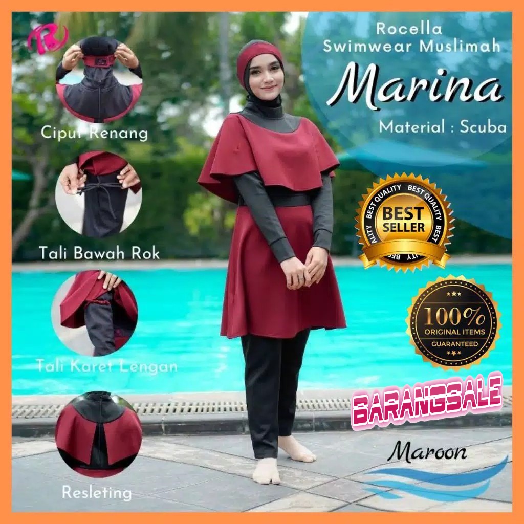 (FREE KACAMATA RENANG) BAJU RENANG MUSLIMAH SYARI PAKAIAN RENANG WANITA PANJANG - ROCELLA MARINA