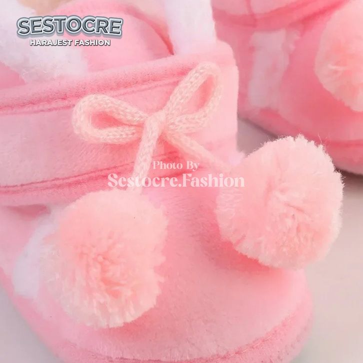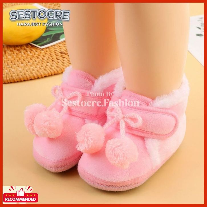 Sepatu Bayi Perempuan Boots Hairball Cute 0 3 6 9 12 Bulan Baby Shoes Prewalker New Born Nyaman SoftSole Anti Slip Desig