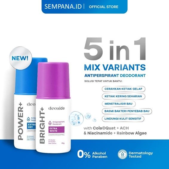 Deoxide Antiperspirant Deodorant Roll On BRIGHT+ For Brightening Deoxide Deodorant Roll On POWER+ For Hyperhidrosis