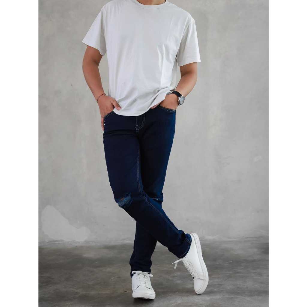 Celana Jeans Panjang Pria Sobek Lutut Slimfit Hitam Ripped Soft Denim Stretch Skinny Size 27-38