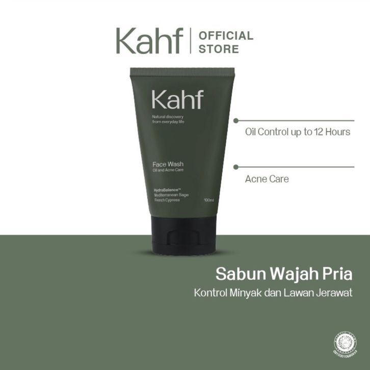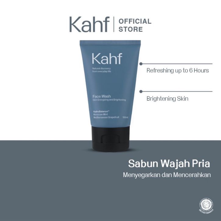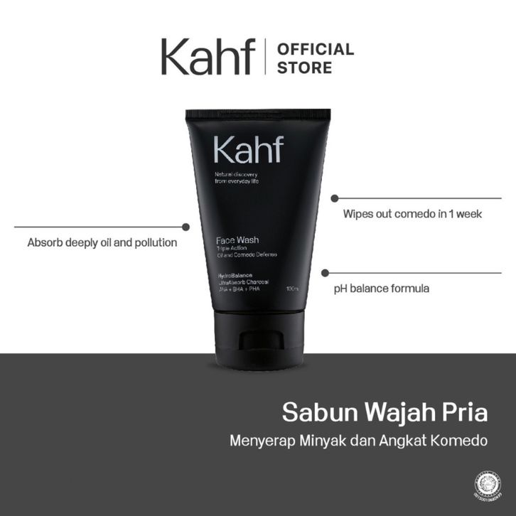 KAHF Face Wash Indonesia / Sabun Wajah Pria 100ml / Skin Energizing And Brightening Triple Action Oil Comedo Defense Acn