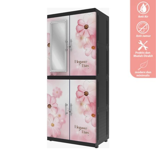 NAIBA LEMARI PAKAIAN PLASTIK 4 SUSUN MSC FIT EBONY KACA NONKACA MURAH TERBARU