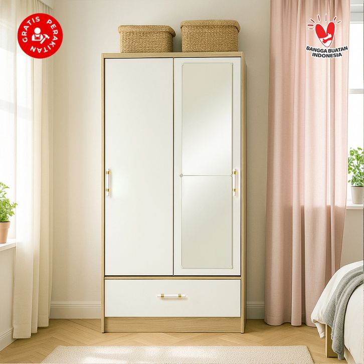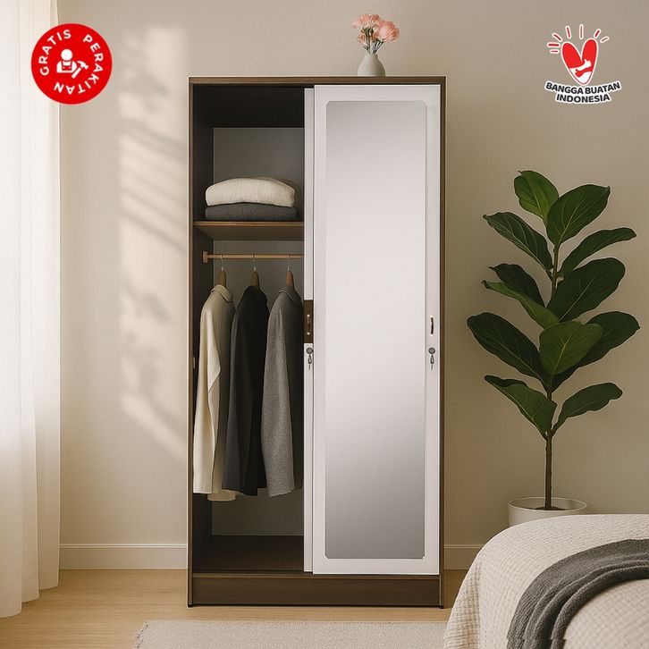 LEMARI PAKAIAN SLIDING 2 PINTU MURAH MODERN MINIMALIS FREE ONGKIR