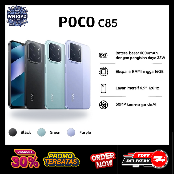 [Mall] Hp Murah 1 Jutaan POCO C85 (6/128 GB) (8/256 GB) Baterai besar 6000mAh dengan pengisian daya 33W | Ekspansi RAM
