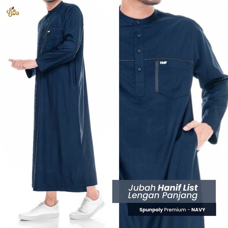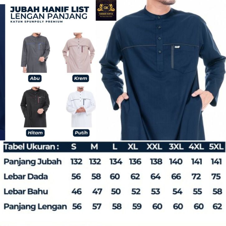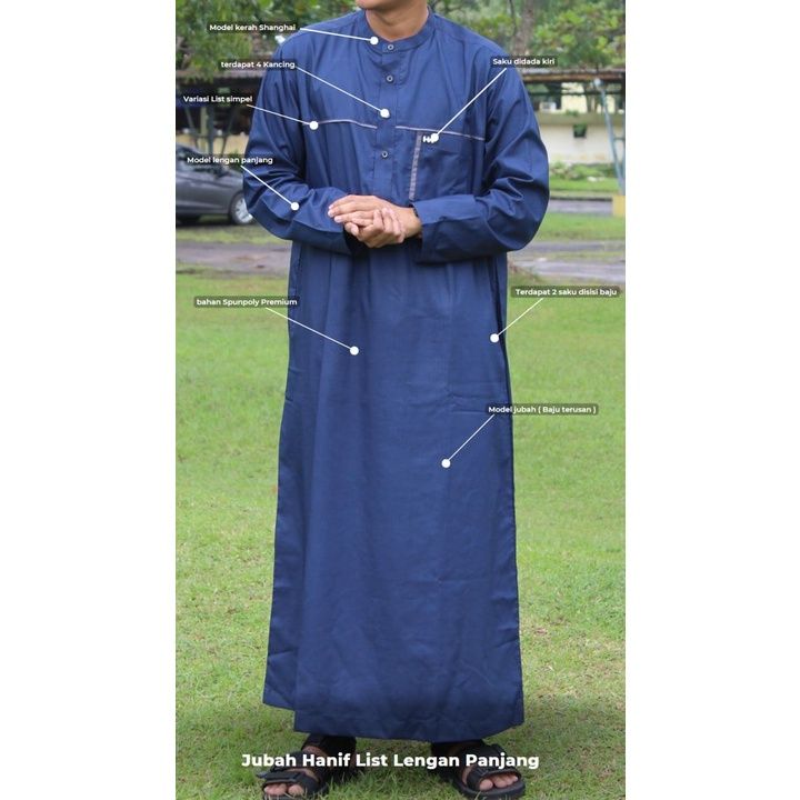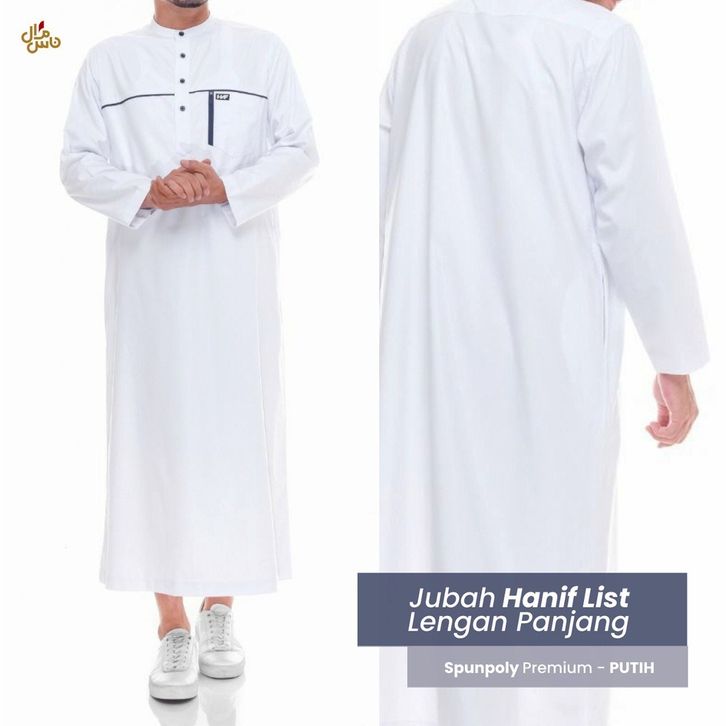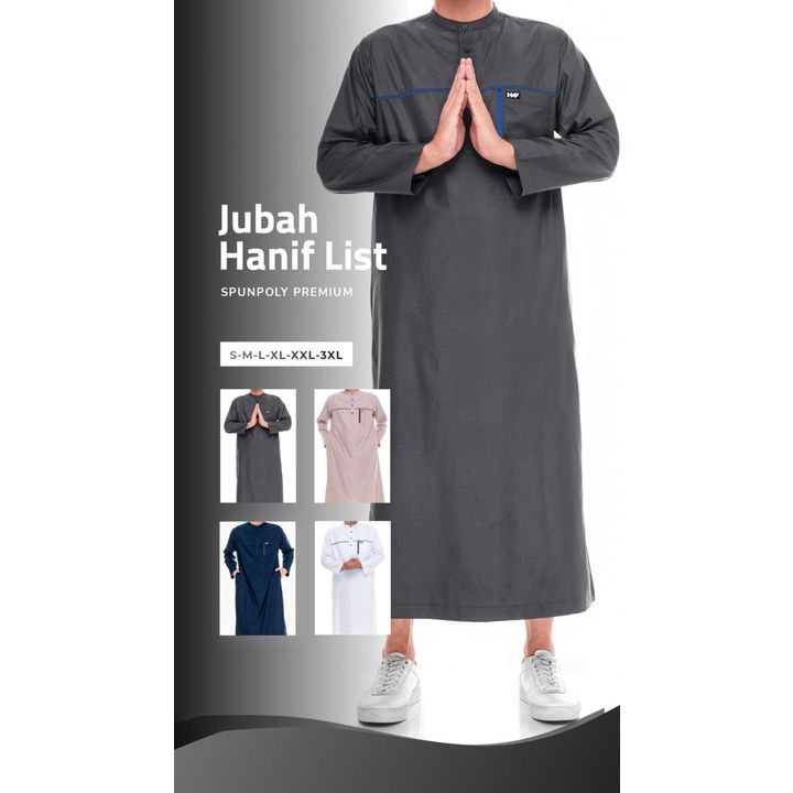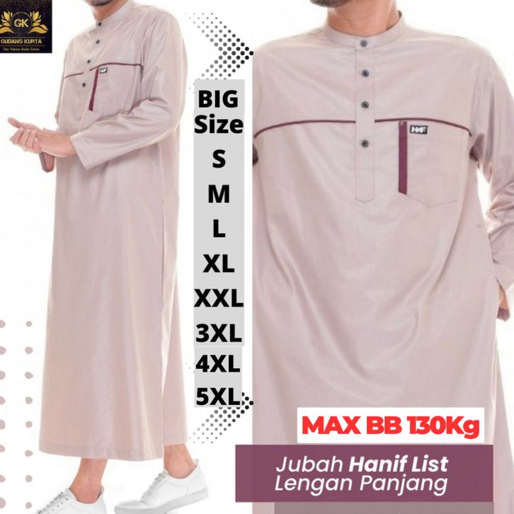 Gamis Pria - (S-5XL) Gamis Jubah Gamis Pria Dewasa Muslim Polos Lengan Panjang Premium Hanif List / Jubah Hanif Dewasa