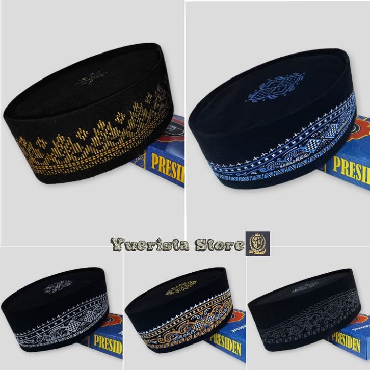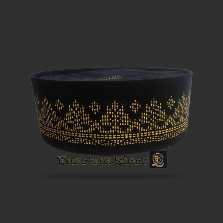 Peci Songkok Kopiah Hitam Motif BATIK BIRU Tinggi 9cm - Songkok Anak Laki Laki SHOLAT