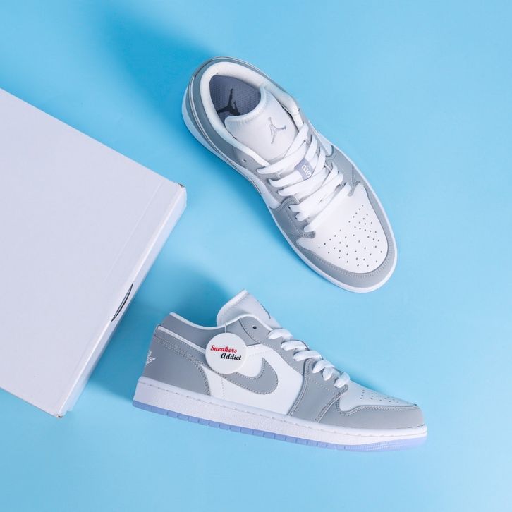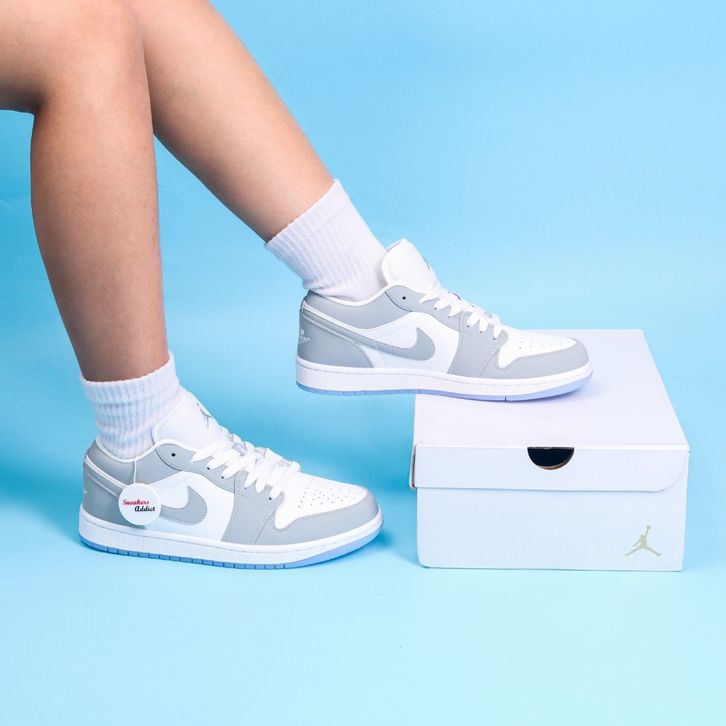 [Star] SEPATU NIKE AIR JORDAN 1 LOW WHITE WOLF GREY ALUMUNIUM 100% BNIB SEPATU NIKE ORIGINAL PRIA ORIGINAL