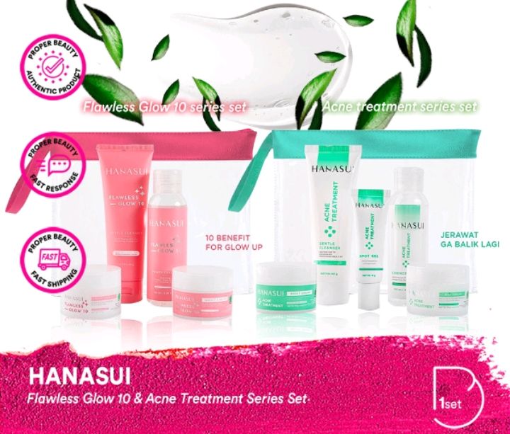 Gratis Ongkir HANASUI Flawless Glow 10 & Acne Treatment Series Set Indonesia / Gentle