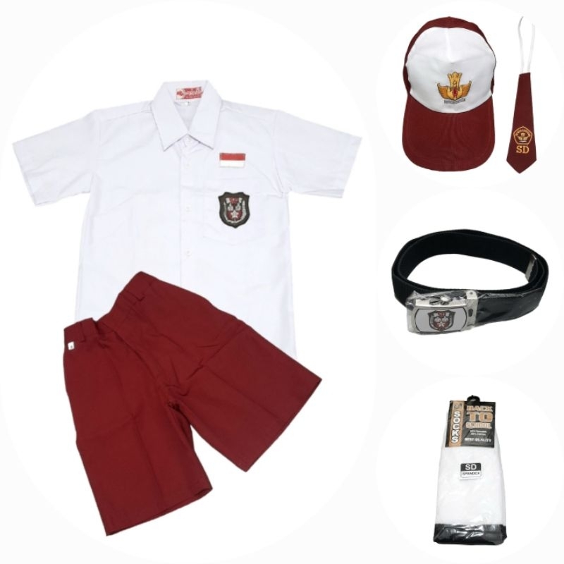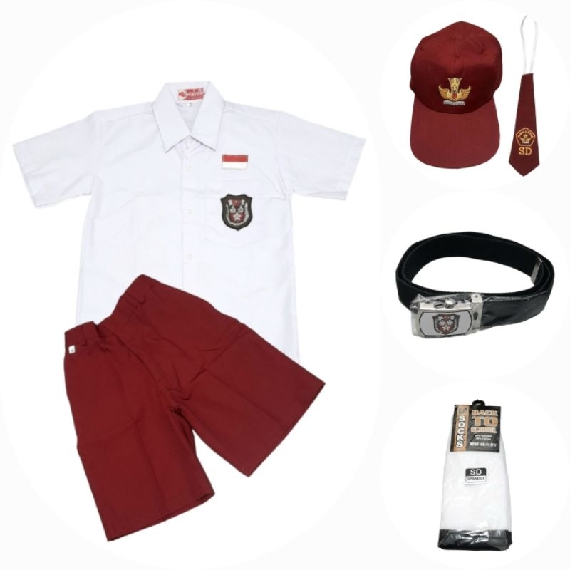 Setelan Seragam Sekolah SD Pria Baju Pendek Celana Pendek