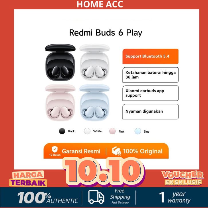 [Star] Xiaomi Redmi Buds 6 Play – TWS Bluetooth 5.4, 36 Jam Baterai, Support Xiaomi Earbuds App, Original