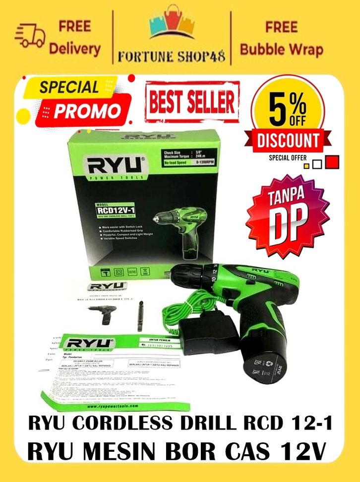 RYU CORDLESS DRILL RCD 12-1 MESIN BOR CAS 12V - GRATIS ONGKIR