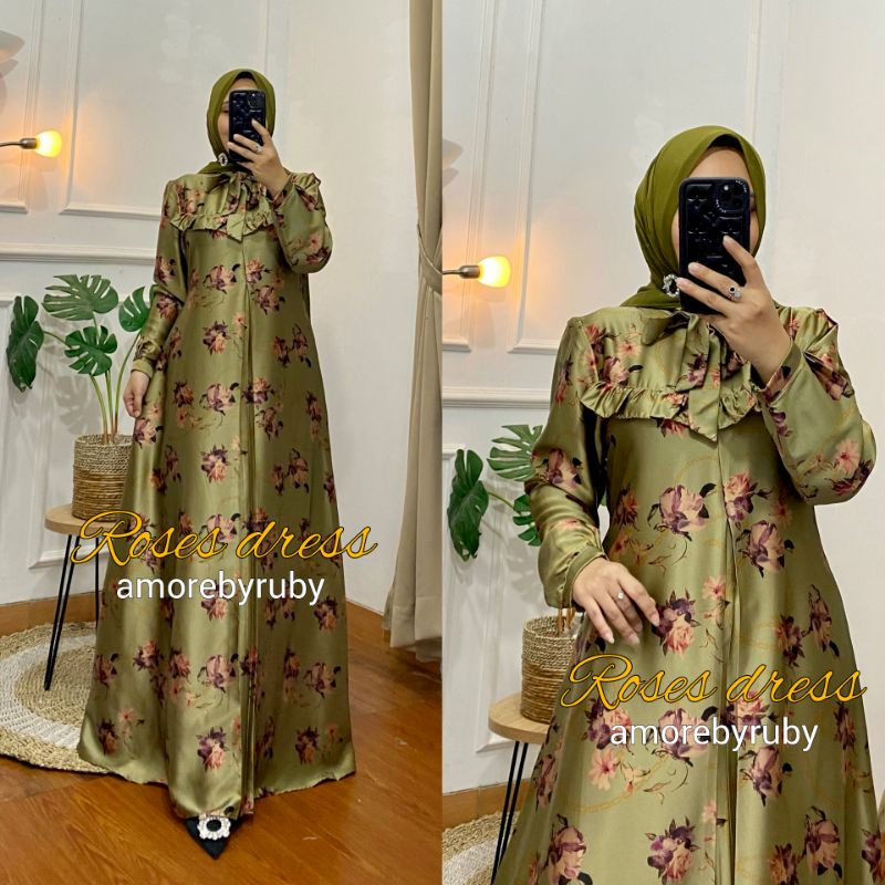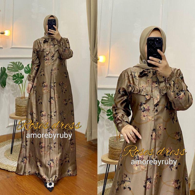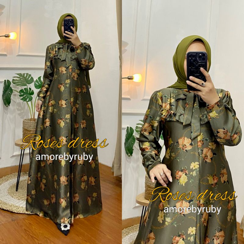Roses Dress Amore By Ruby Dress Muslim Baju Wanita Motif Bunga