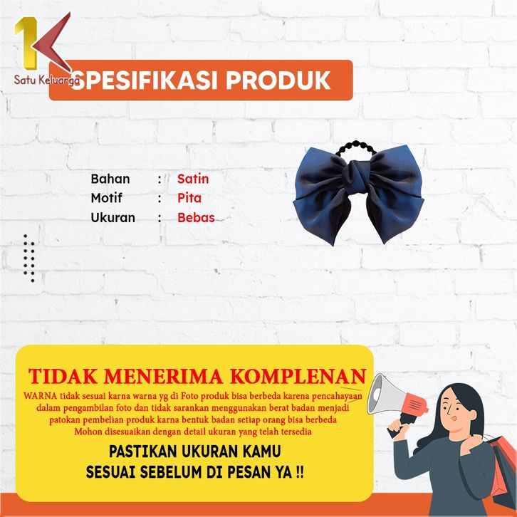 Ikat Rambut Pita Besar Bahan Satin Kuncir Rambut Ribbon Hairband Aksesoris Wanita Kunciran Rambut 1K C160