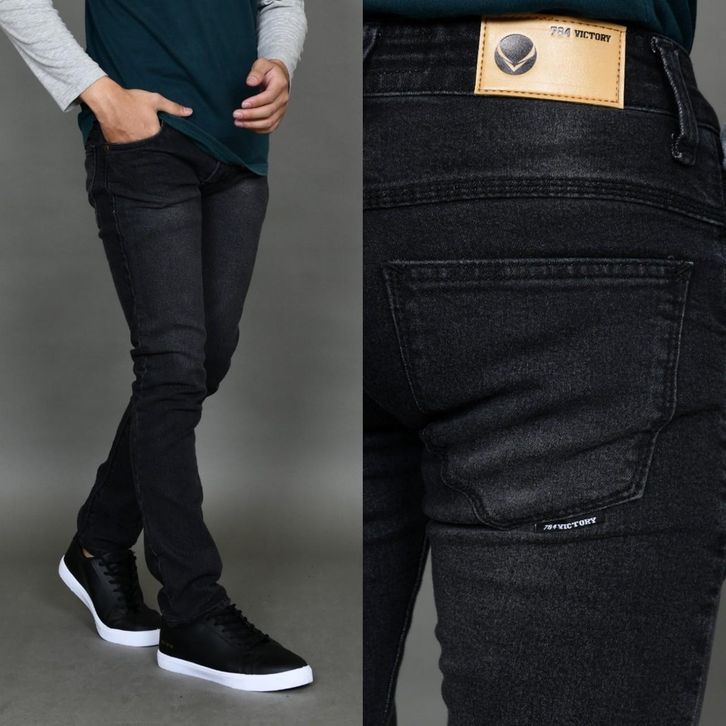 Celana Jeans Cowok Panjang Skinny Denim Stretch Seven Denim,victory 784,air Black