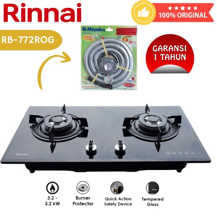 KOMPOR GAS RINNAI 2 TUNGKU TANAM KACA RB 772 ROG RB 773 ROG KOMPOR GAS BEST SELLER ORIGINAL OFFICIAL STORE