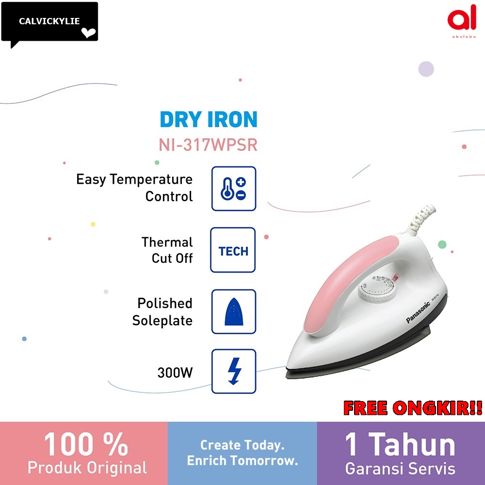 SETRIKA BAJU PANASONIC NI317WPSR DRY IRON SOFT PINK ORIGINAL-FREE ONGKIR
