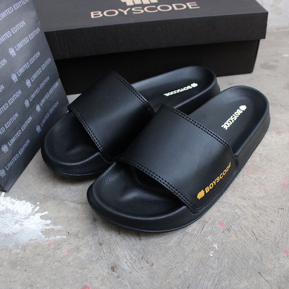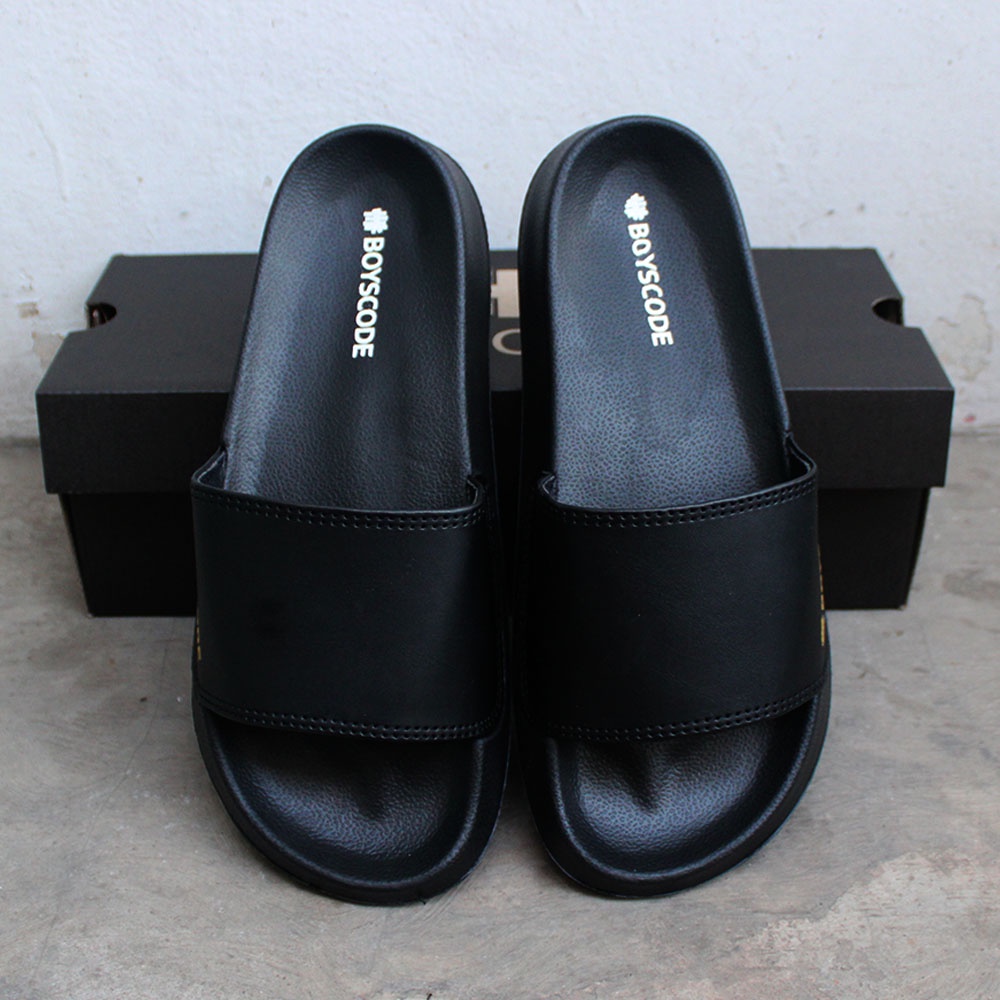 sandal lebaran pria 2024 Sandal Slip On Pria Distro Terbaru Boyscode Hitam G01D/ Sandal Slop Pria / Sandal Slide Pria