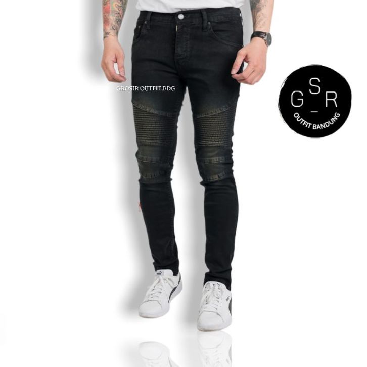 Celana Jeans Cowok Panjang black wash original full softjeans melar /bikers pria / jeans pria /riding