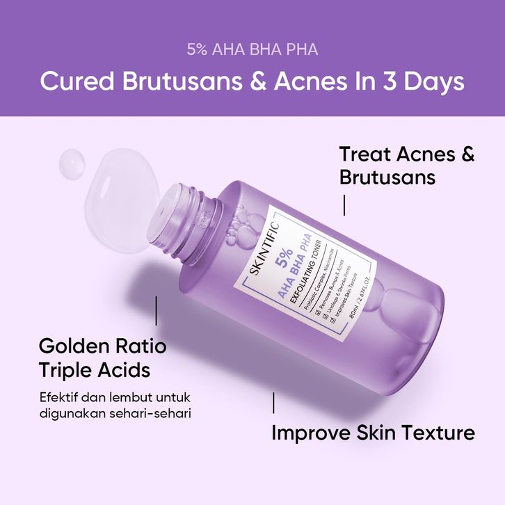 SKINTIFIC - Aha Bha Pha Exfoliating Toner Face Eksfoliasi wajah Glow and Smooth Skin with Niacinamide
