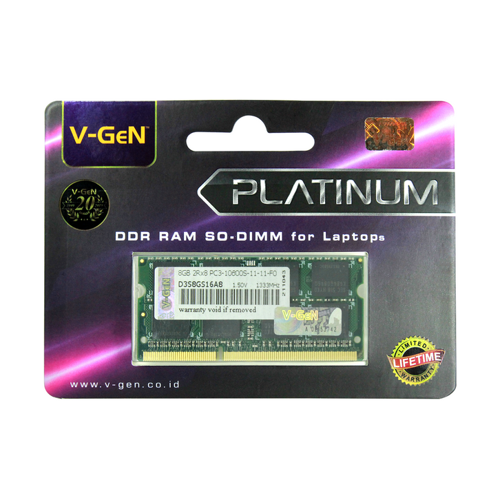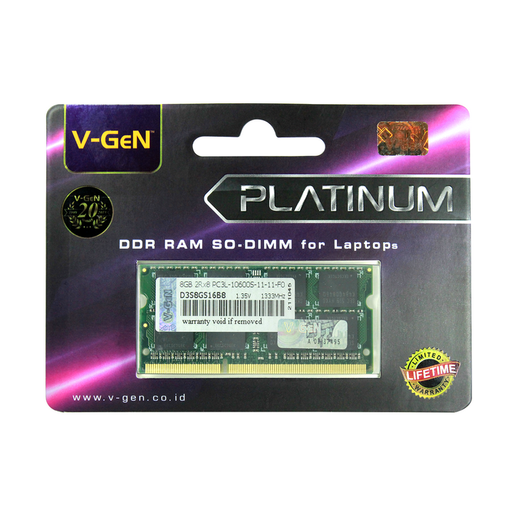 RAM DDR3/DDR3L SODimm V-GeN Platinum 8GB PC10600/1333Mhz - Memory Laptop VGEN