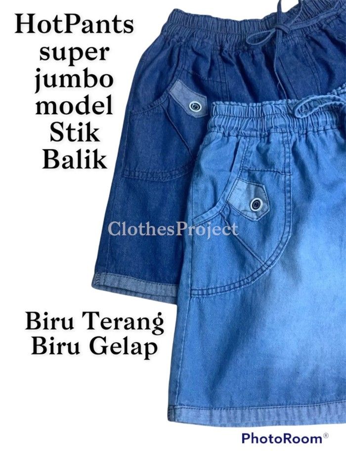 CELANA WANITA JEANS DENIM PENDEK JUMBO HOTPANTS PINGGANG KARET POLOS