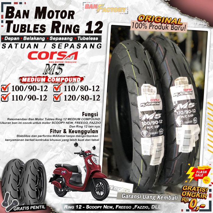 ban motor matic tubles corsa m5 scoopy ring 12 ban motor matic depan belakang scoopy vespa matic tubles ring 12 tubeless
