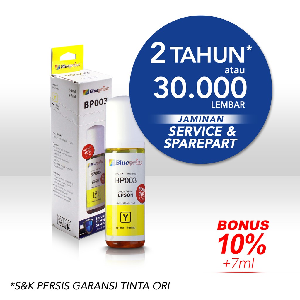Tinta Epson BLUEPRINT 003 For Printer Epson L1110 L3110 L3150 72ml Yellow - Kuning