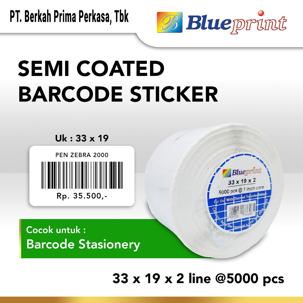 Sticker label Barcode 33x19 mm 2 Line Semicoated BLUEPRINT Core 1" isi 5000 Pcs - 1 Roll