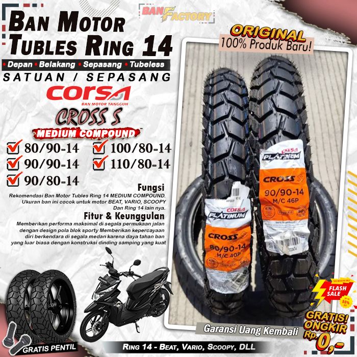 ban motor matic tubles beat corsa cross s ring 14 ban motor matic depan belakang beat vario scoopy ring 14 tubles