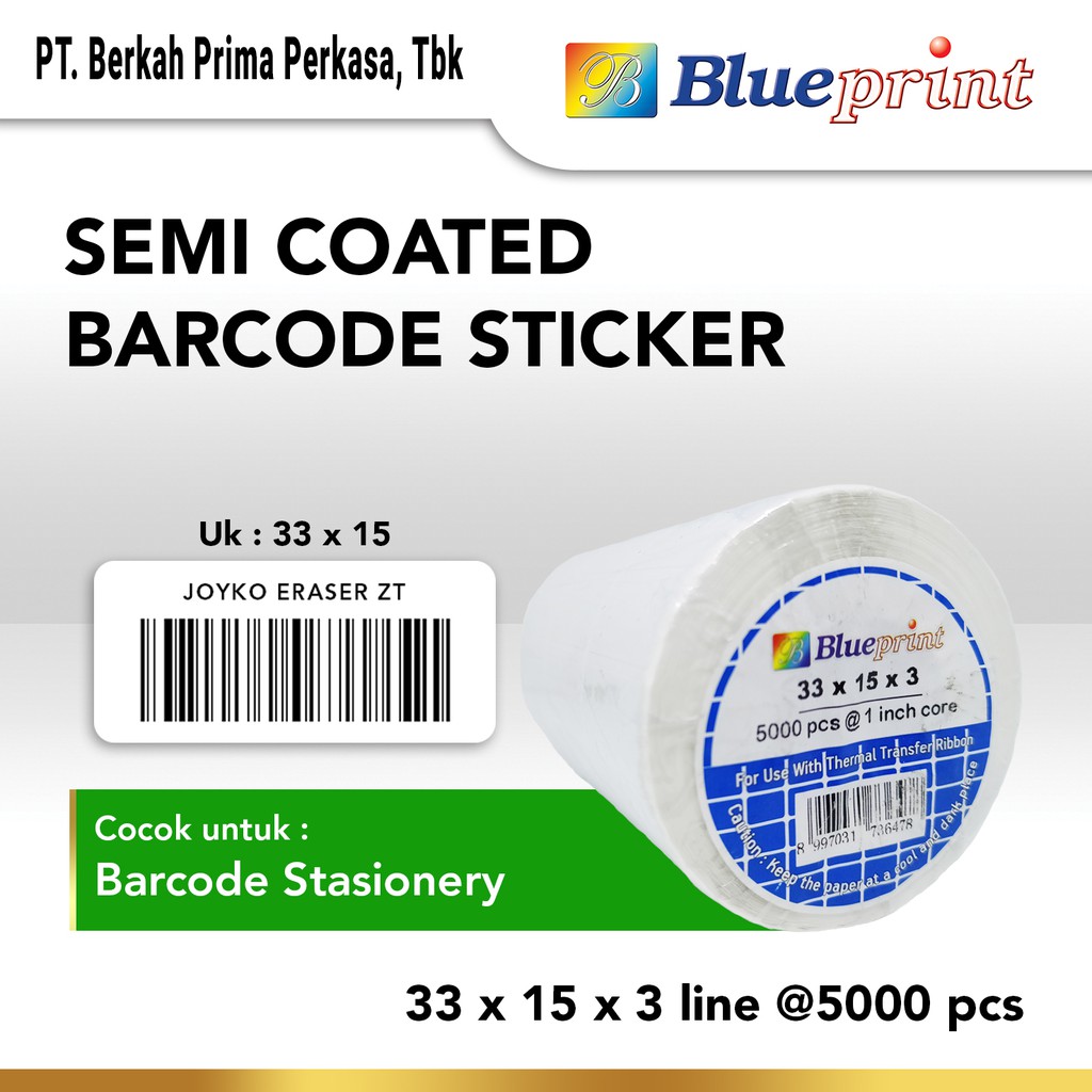 Sticker label Barcode 33x15 mm 3 Line Semi Coated BLUEPRINT Core 1" isi 5000 Pcs
