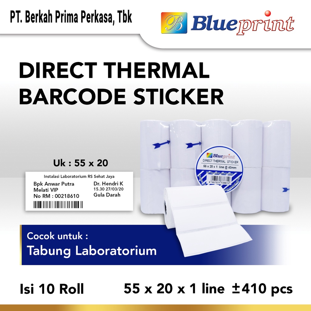 Direct Thermal Sticker , Kertas Label Stiker BLUEPRINT 55 x 20 , 55x20 mm 1 Line - 10 Roll
