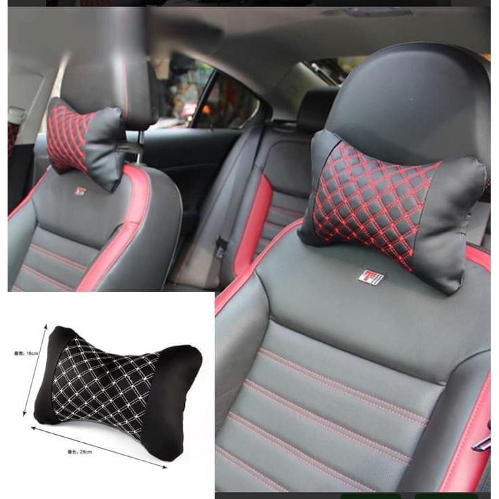 [TERLARIS] Bantal Leher Mobil Motif Benang Merah Exclusive Head Rest Car Neck Pillow Nyaman Kulit Dakron Empuk Motif Kot