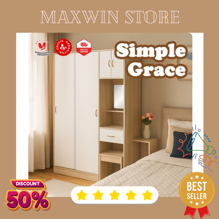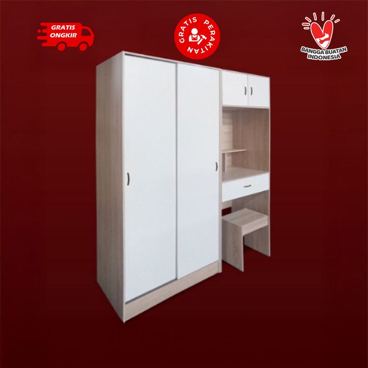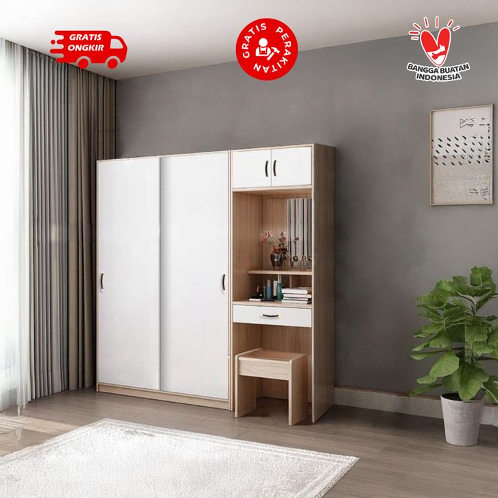 Casaloma Furniture Lemari Sliding Elegan + Meja Rias + kaca Minimalis Modern / Lemari Pakaian Pintu Sliding