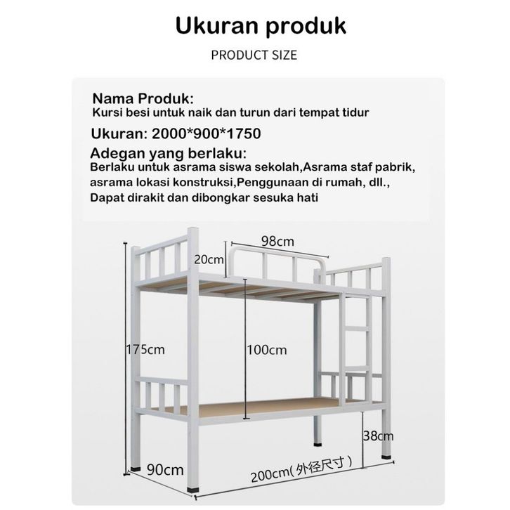 [Star] Ranjang Susun Tempat tidur susun ekstra tebal untuk asrama tempat tidur besi ganda / Ranjang Tingkat Divan Kasur