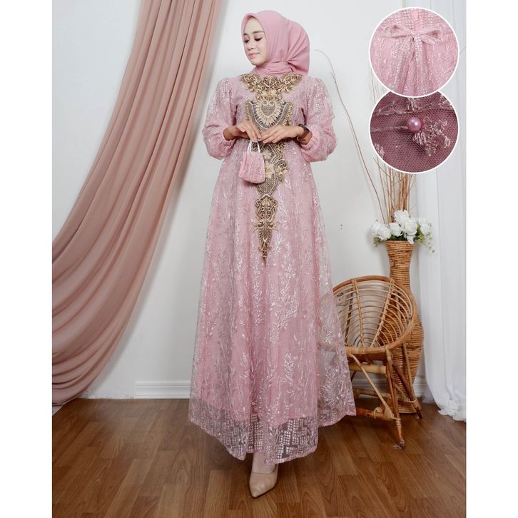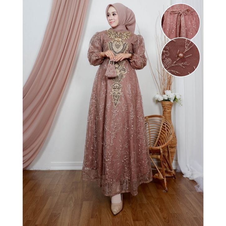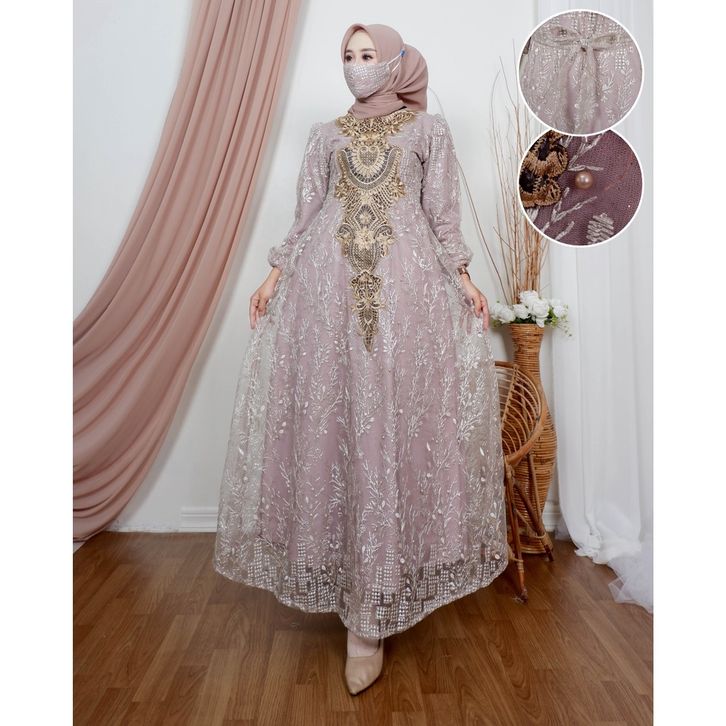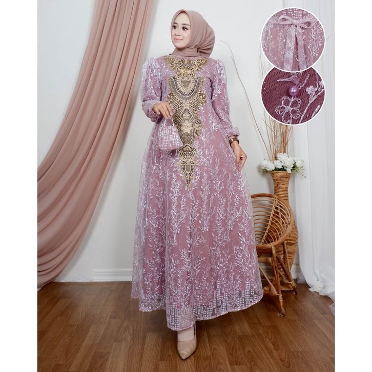 Gamis najwa | Dress pesta | Gamis brukat jumbo Size M L XL XXL