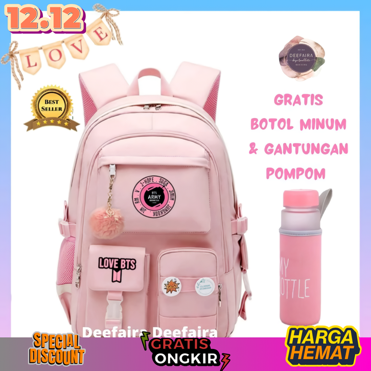 [TANPA DP]Tas Ransel Perempuan Untuk Sekolah Sd Smp Sma L0v3 B3t3s CX1 Free Gantungan Dan My B0ttl3 Lucu